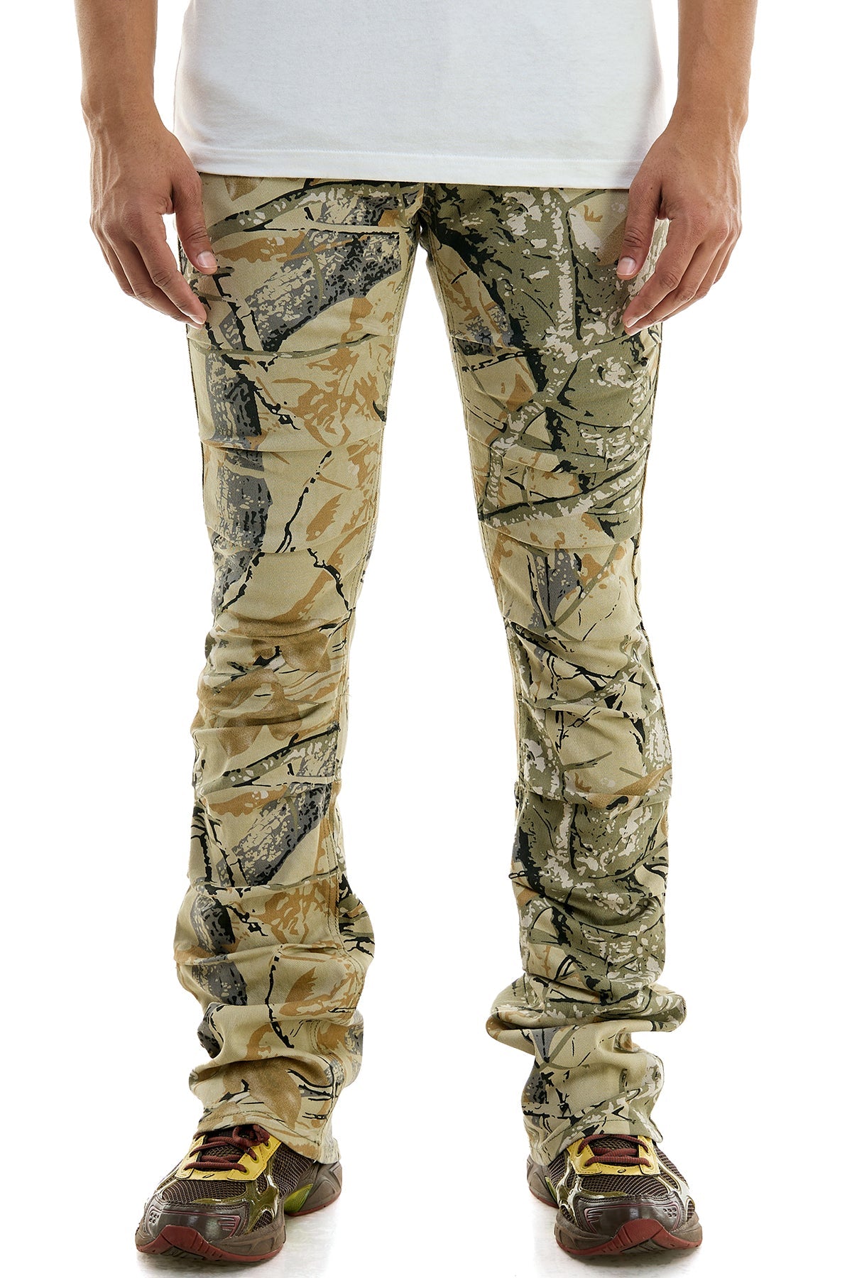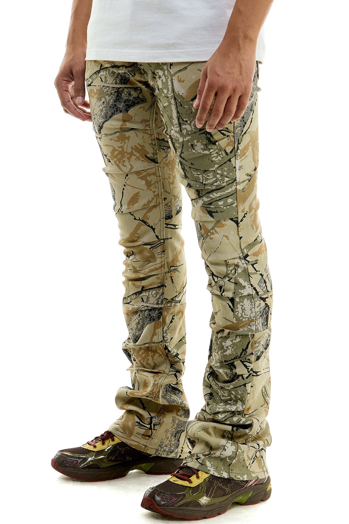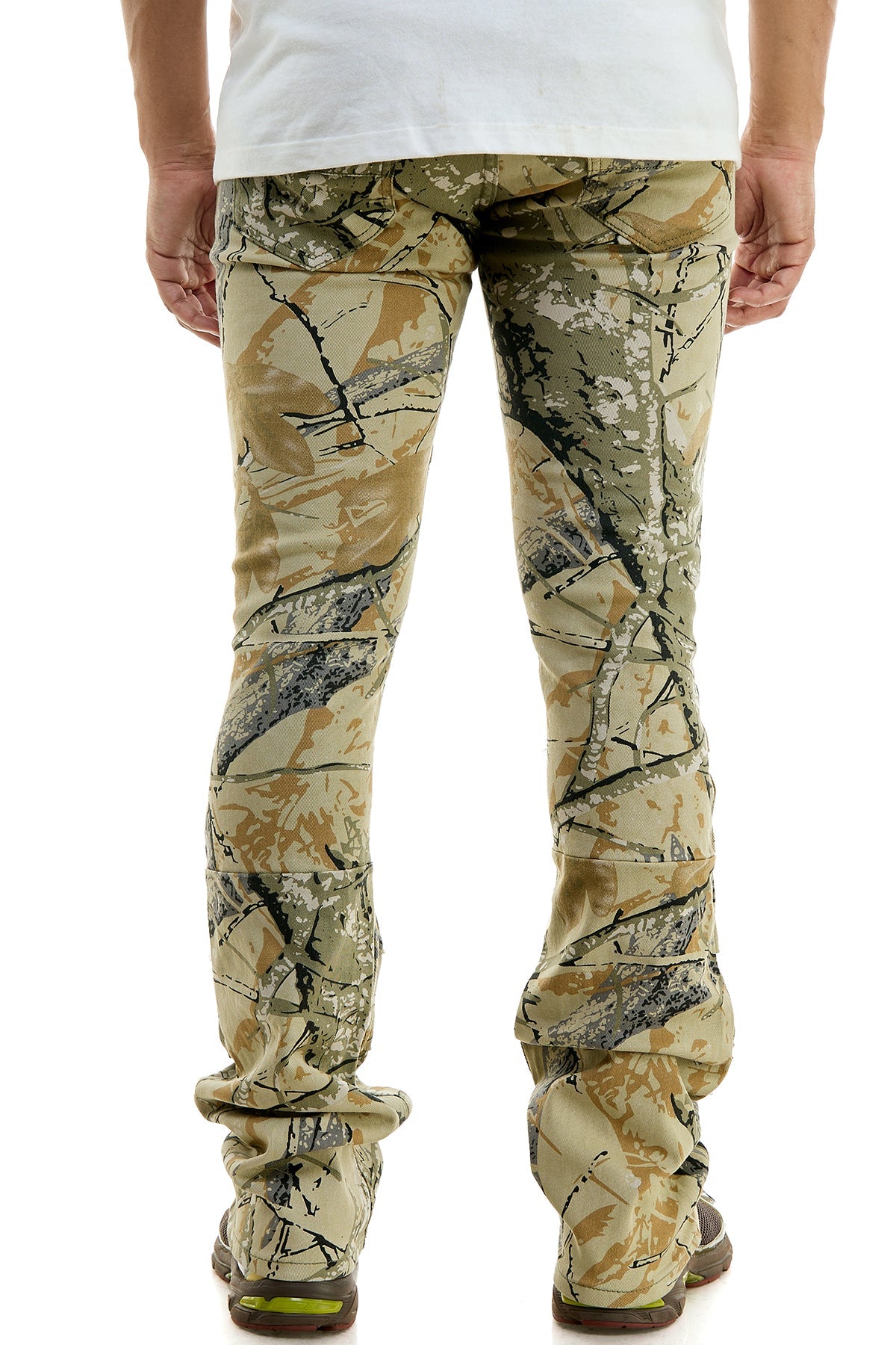 Stacked skinny flare camo-printed pants in stretch twill