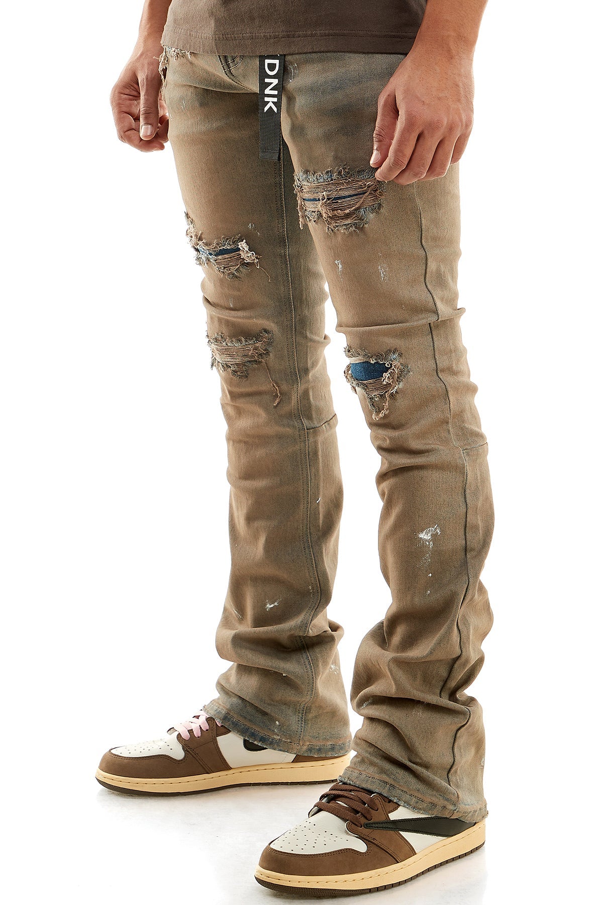 Stacked skinny flare jeans in washed & grayish tinted denim