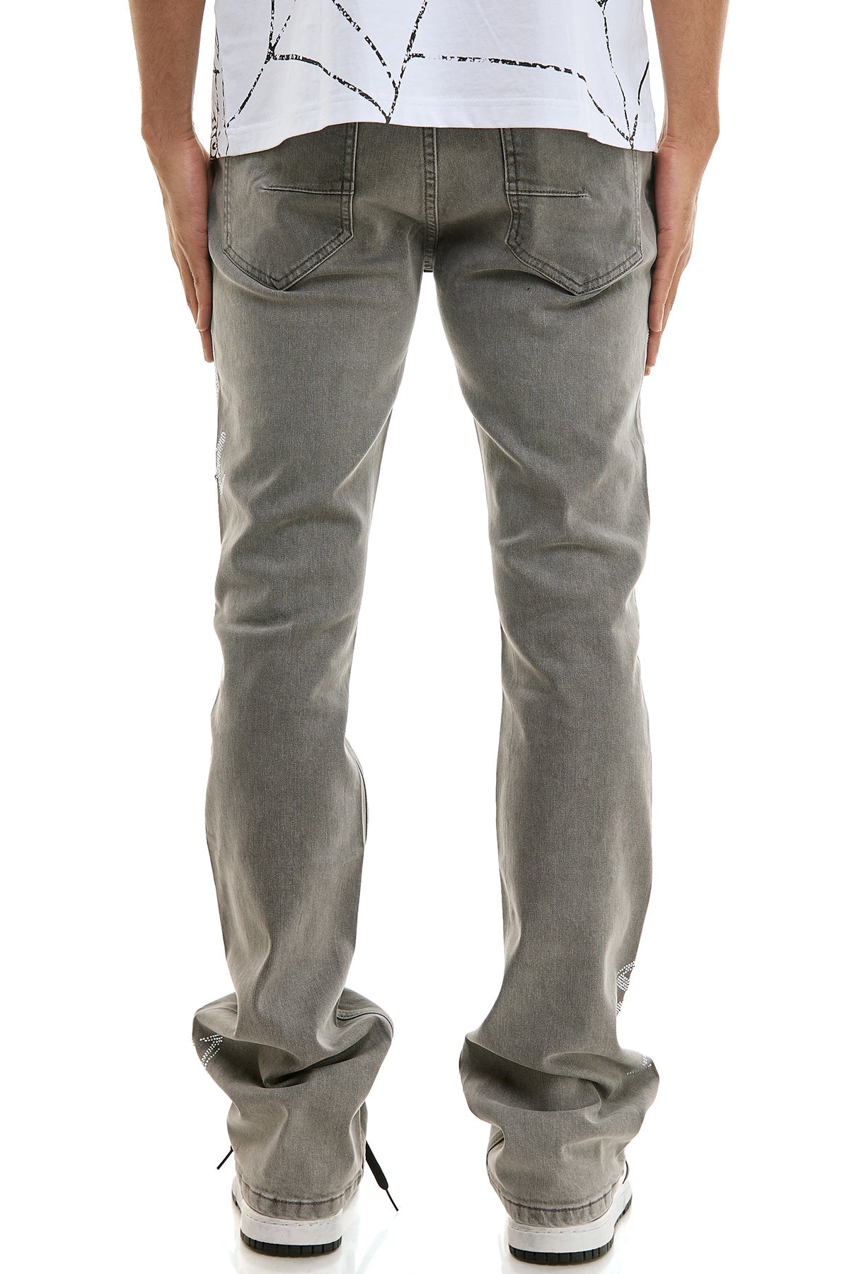 - Premium Medium Grey Wash: A versatile medium grey denim that serves as a perfect backdrop for the brilliant rhinestones.